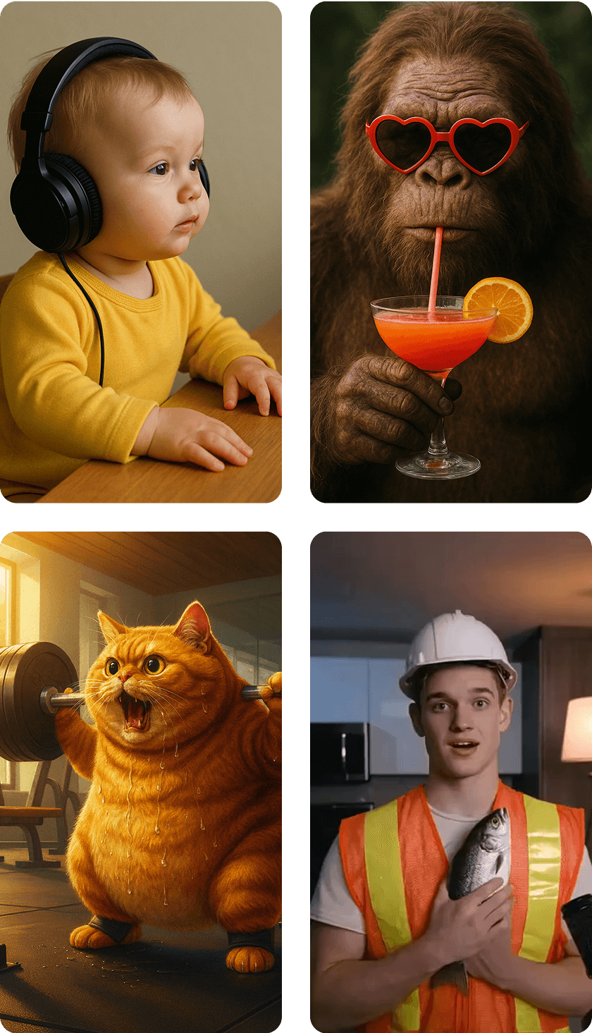 From your own IP to viral AI Bigfoot, just describe your character or upload an image to custom your own actor.